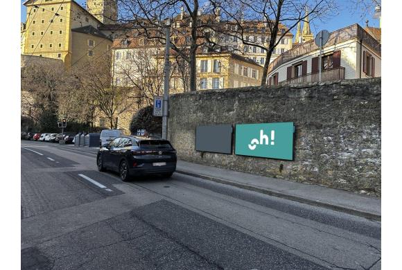 Réseau de 12 affiches en ville de Neuchâtel. 14 jours de diffusion (dates indiquées dans le titre). Format F12 (268.5 x 128 cm). Papier Blueback / Chantegris, extra-blanc,